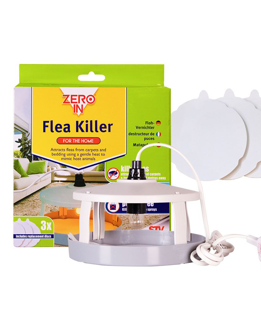 Zero In® Flea Killer tuottaa lempeää lämpöä, joka jäljittelee lämpimänverisiä eläimiä, kuten kissoja ja koiria, ja houkuttelee kirput ansaan joka suunnasta. Tahmea levy vangitsee kirput ilman myrkkyjä tai suihkeita ja sopii ympärivuotiseen käyttöön. Turvallinen ja helppo – Zero In Flea Killer auttaa poistamaan kaikki kirppuinfektiot.